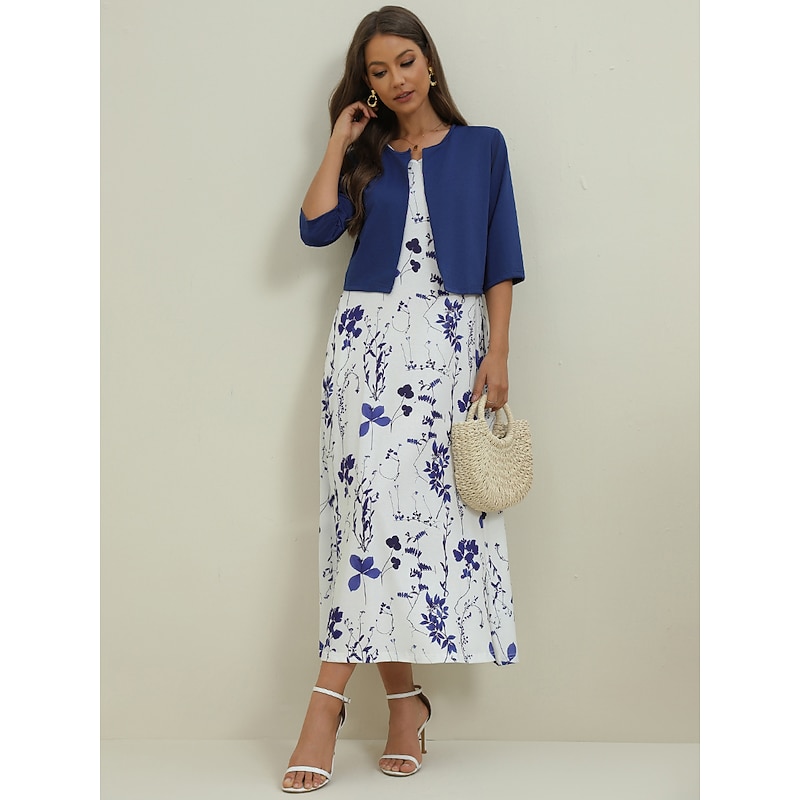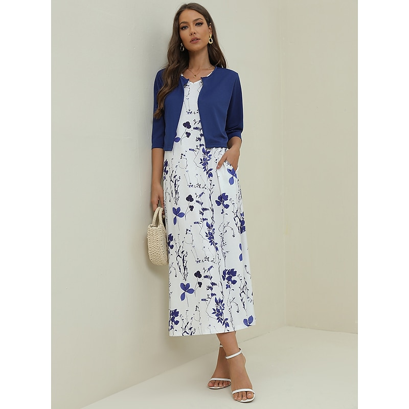 More information about Women's Midi Dress Two Piece Dress Set Casual Dress Print Dress Daily Vacation Fashion Elegant Pocket Print Crew Neck Half Sleeve Floral Regular Fit Black Navy Blue Green Summer Spring S M L XL XXL