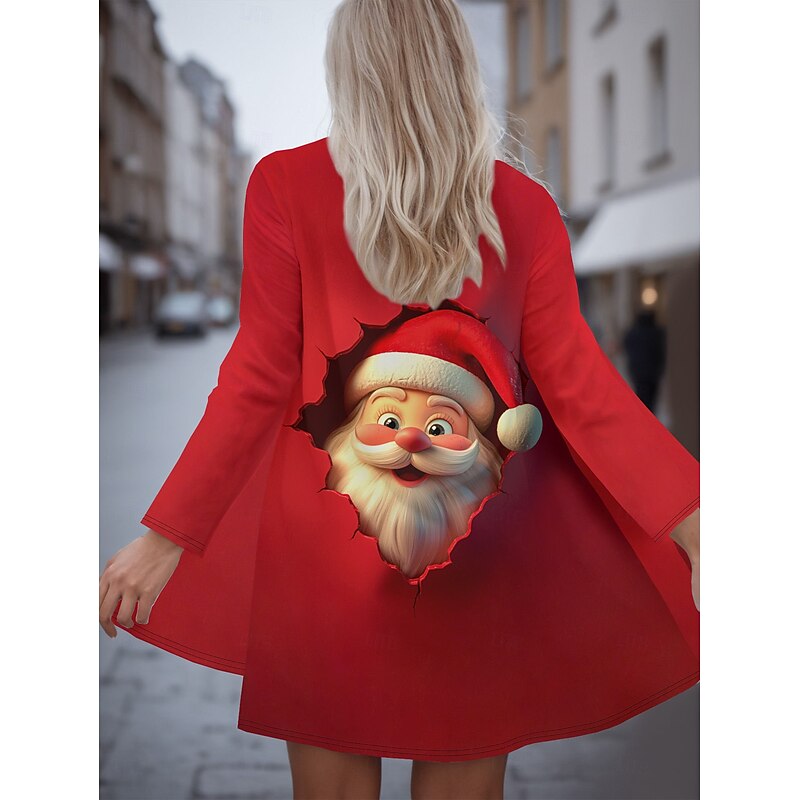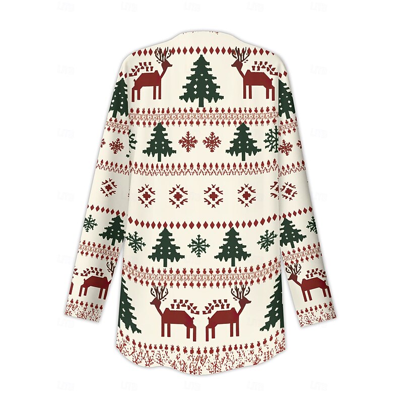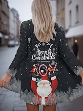 More information about Women's Winter Coat Lightweight Comfortable Print Open Front Vintage Fashion Casual Snowman Vacation Casual Long Collarless Regular Fit Long Sleeve Outerwear Black Red Blue Spring Fall