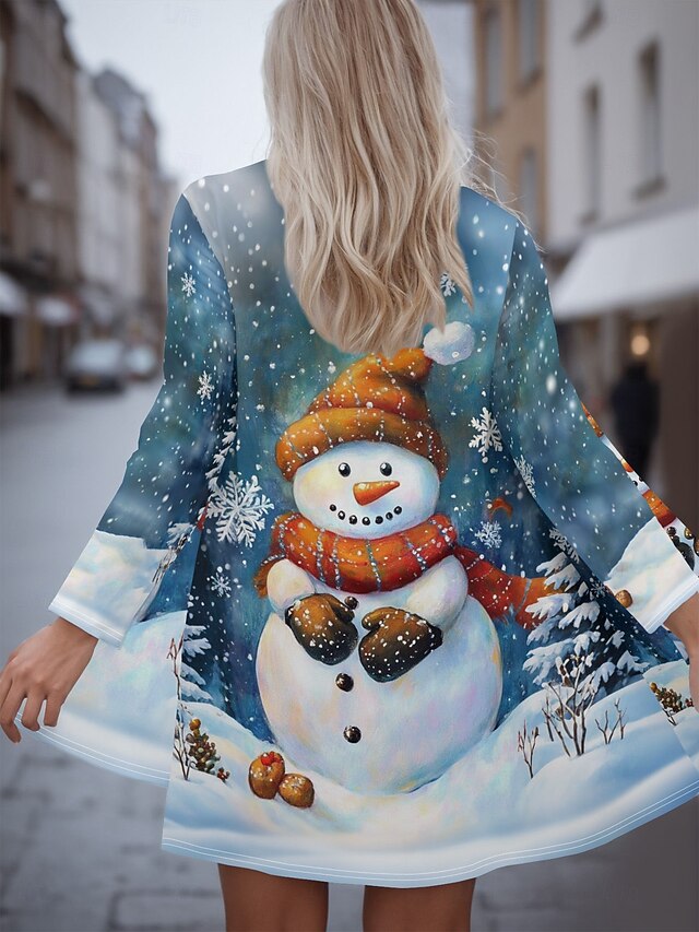 Women's Winter Coat Lightweight Comfortable Print Open Front Vintage Fashion Casual Snowman Vacation Casual Long Collarless Regular Fit Long Sleeve Outerwear Black Red Blue Spring Fall 2