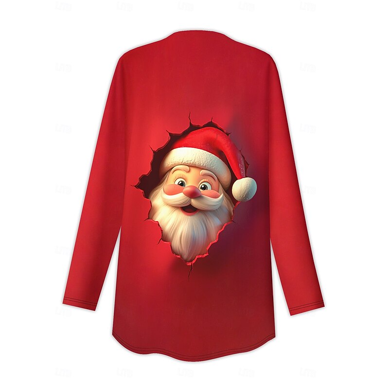Women's Winter Coat Lightweight Comfortable Print Open Front Vintage Fashion Casual Snowman Vacation Casual Long Collarless Regular Fit Long Sleeve Outerwear Black Red Blue Spring Fall 4
