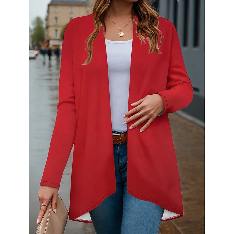HOT ! Women's Winter Coat Lightweight Comfortable Print Open Front Vintage Fashion Casual Snowman Vacation Casual Long Collarless Regular Fit Long Sleeve Outerwear Black Red Blue Spring Fall