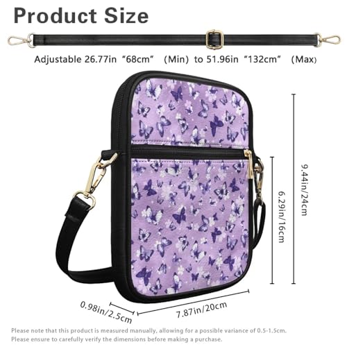 • Size: Measuring 7.87" L x 0.98" W x 9.44" H (20 cm L x 2.5 cm W x 24 cm H), this messenger bag for women and men with a main compartment that effortlessly fits a small wallet, phone, lipstick, pen, tissues and sunglasses; Built in card slot, the convenient front pocket keeps keys, cash, cards, and tickets organized