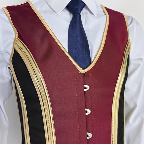 • Note:This is not The USA size, kindlpy please refer to the size chart picture in the page Material Composition: This men's suit vest corset is made of cotton fabric, metal buckles, PU leather trims, laces up at back, and support bones.Black at waist,Red Middle mixed gold pu leather trims,fashion and elegant for gentlemen wear.