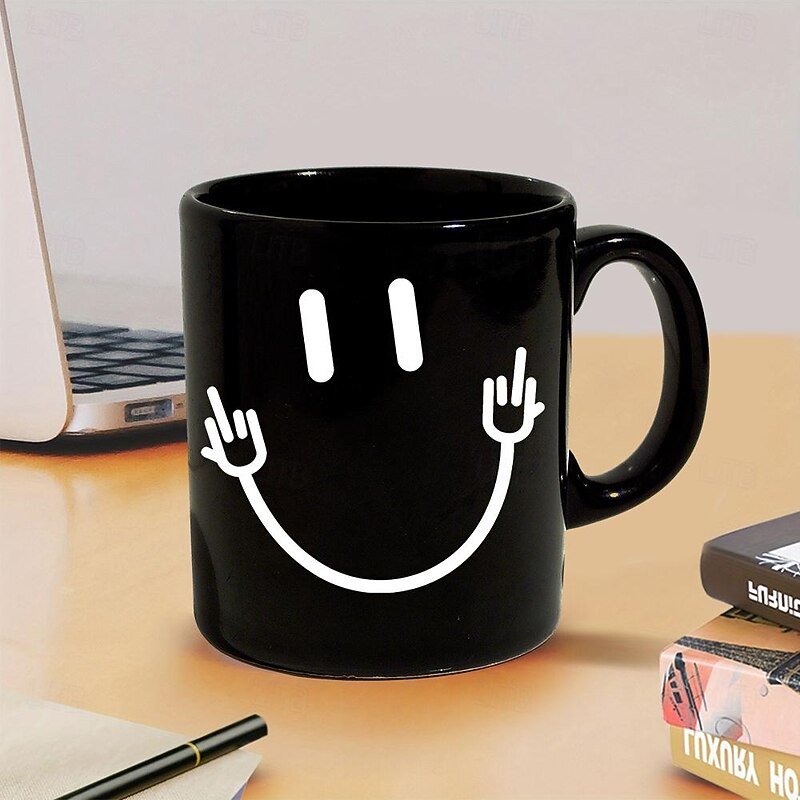 HOT ! Smile Face Middle Finger Sarcasm Meme Funny Coffee Mugs Uniqo Gift For Friends
