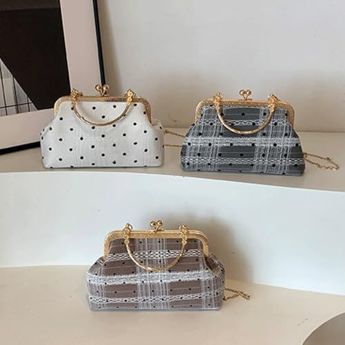 HOT ! Kiss Lock Purse and Handbag for Women Polka Dot Medium Crossbody Bag Lace Handbags Kiss Clasp Tote Shoulder Bags