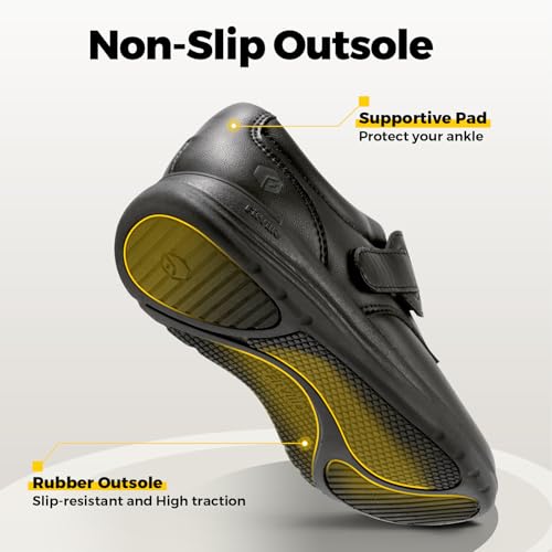 • 【DIABETES FRIENDLY】Engineered with the diabetic wearer in mind, the dress shoes padded neckline prevents chafing, hook & loop strap for easy slip on fit, flexible adjustment of tightness, cozy fit around your ankles, enhancing comfort with every step.