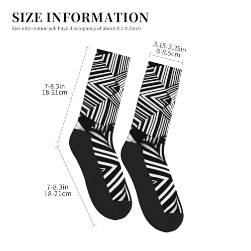 HOT ! Crew Socks for Women Men Athletic - Black and white geometric lines Moisture Wicking Running Socks/Outdoor Recreation Mid-Calf