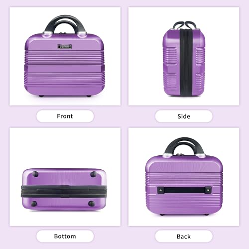 HOT ! 14" Portable Hard Shell Makeup Travel Case - Stylish PC+ABS Cosmetic Organizer for Women - Scratch-Resistant, Elastic Strap, Mini Suitcase - Perfect for Romantic Gifts(Futuristic Purple)