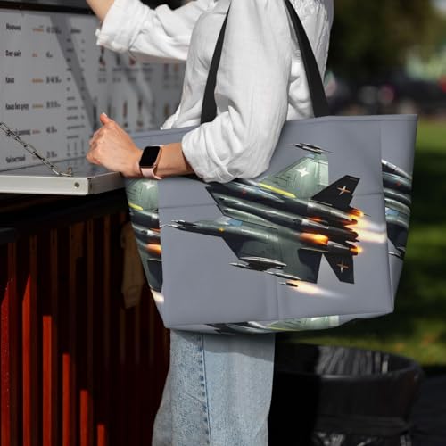 More information about Jet Fighter Large Capacity Foldable Tote Bag Women Beach Tote Bag Handbag Gym Bag Travel Shopping Bag