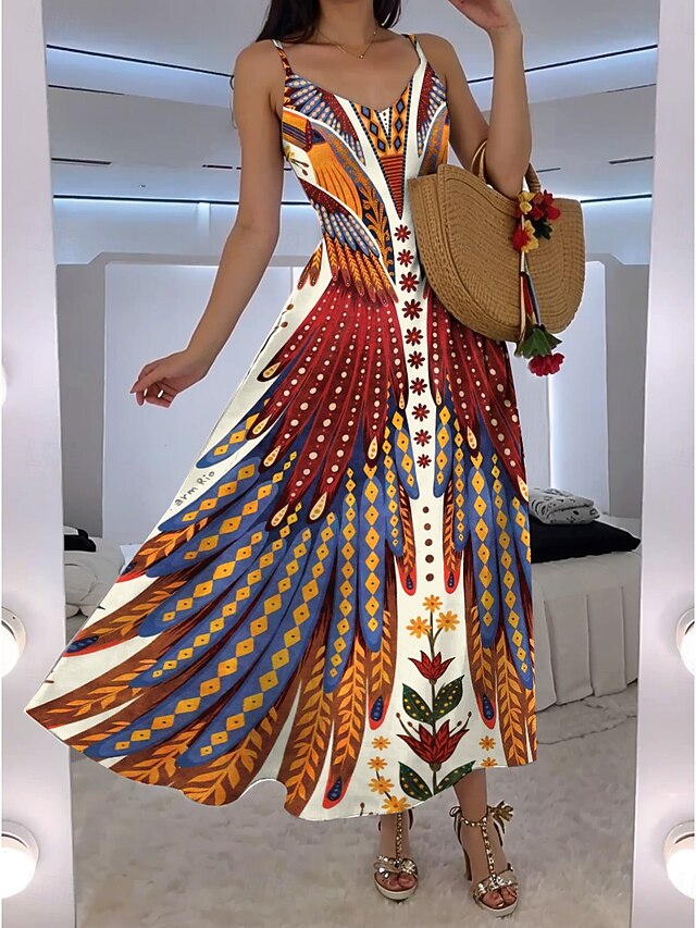 HOT ! Women's Maxi Dress A Line Dress Slip Dress Vacation Casual Boho Going out Beach Regular Fit Floral Graphic Feather Sleeveless V Neck Blue Orange Green Rose Pink Summer Spring