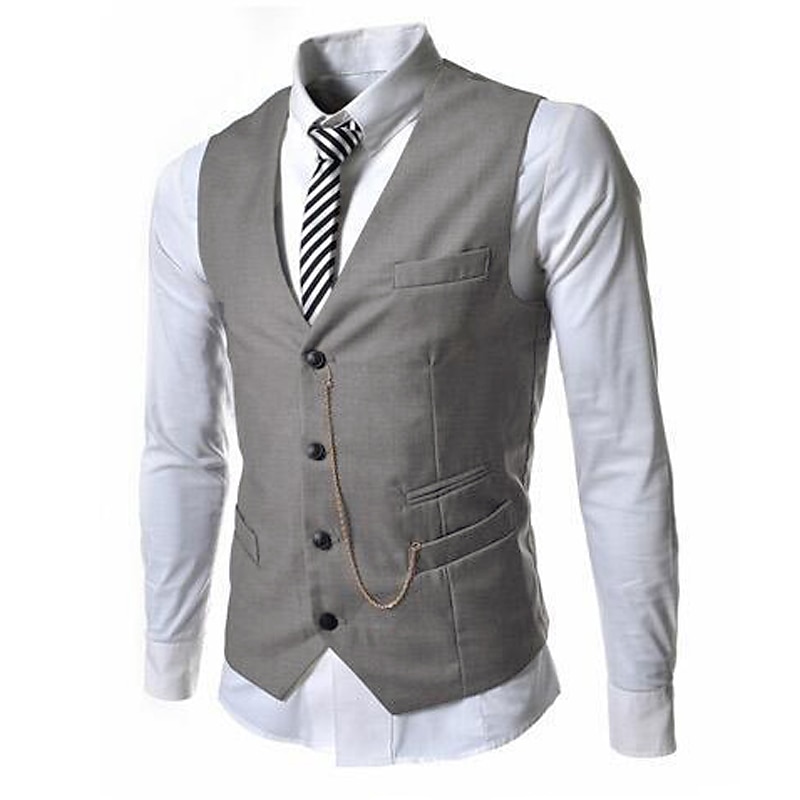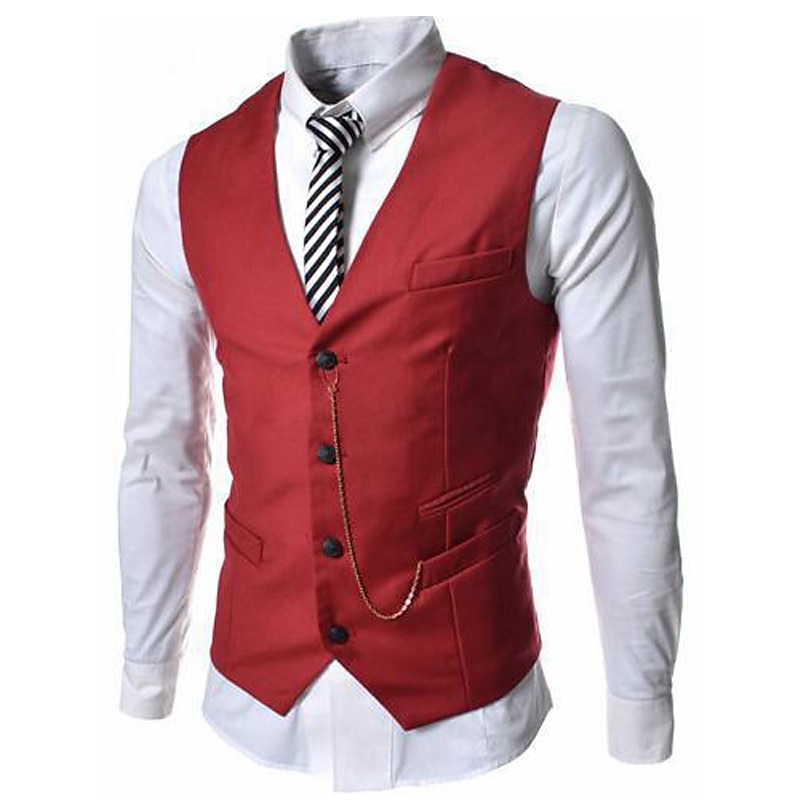 More information about Men's Vest Suit Vest Gilet Wedding Business Causal Casual 1920s Smart Casual Polyester Solid Colored Single Breasted Shirt Collar Slim Black Red Light Grey Vest