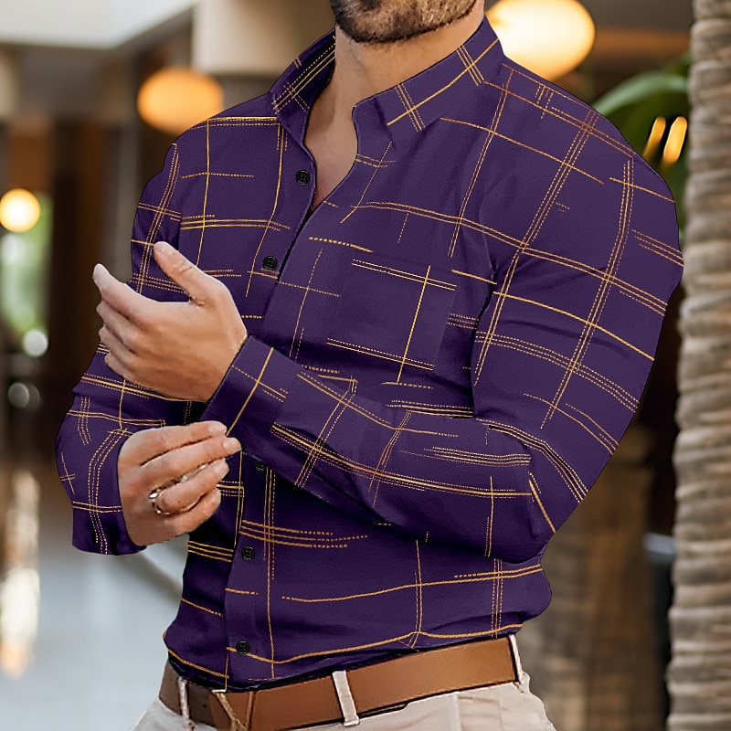 More information about Men's Shirt Dress Shirt Button Down Shirt Wrinkle Resistant Plaid Office & Career Wedding Party Black White Red Royal Blue Long Sleeve Lapel Spring & Fall Clothing Apparel Front Pocket