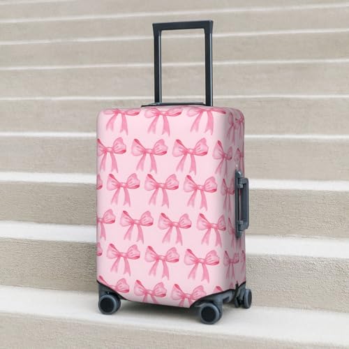 Travel Luggage Cover Pink Bows, High Elasticity Washable Travel Baggage Protector Case Fits 26-28 in 1