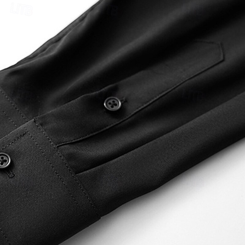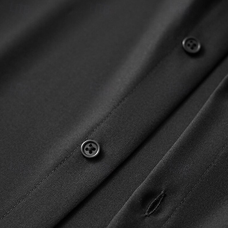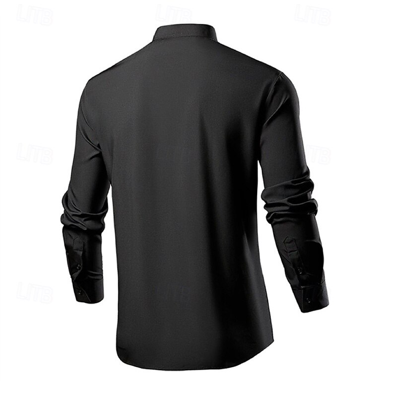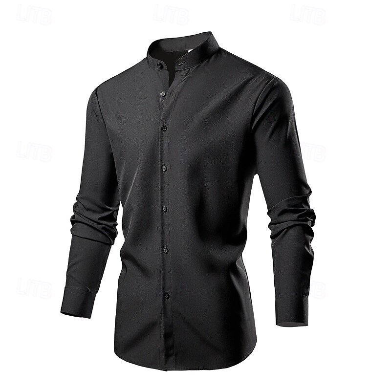 More information about Men's Shirt Summer Shirt Casual Shirt Beach Shirt Button Up Shirt Black White Green Long Sleeve Plain Grandad Collar Band Collar Vacation Hawaiian Button-Down Clothing Apparel Polyester Fashion