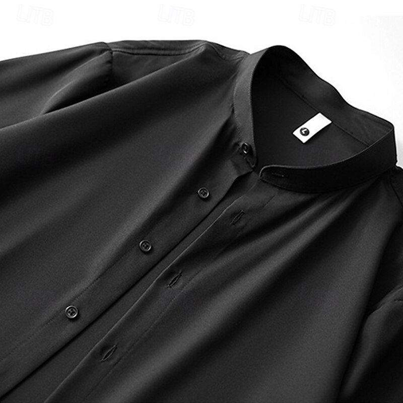 Men's Shirt Summer Shirt Casual Shirt Beach Shirt Button Up Shirt Black White Green Long Sleeve Plain Grandad Collar Band Collar Vacation Hawaiian Button-Down Clothing Apparel Polyester Fashion 6