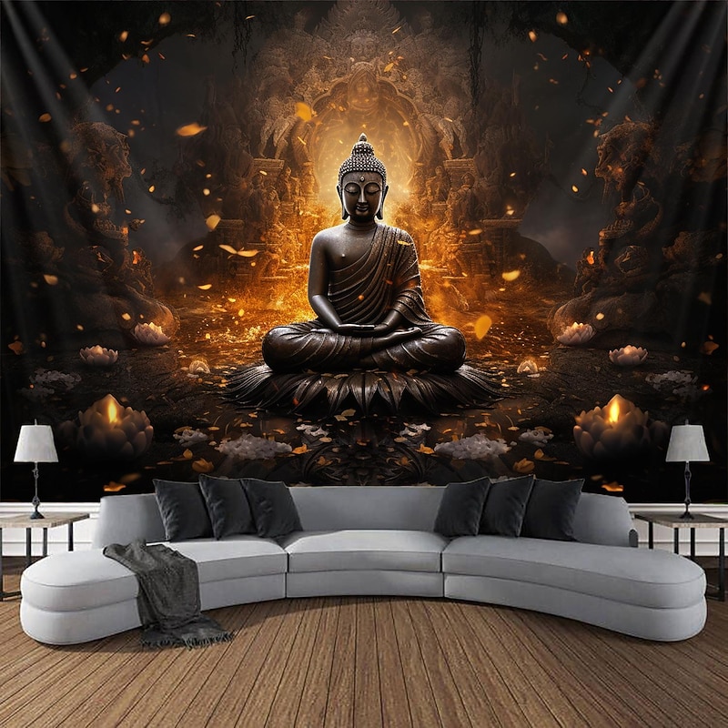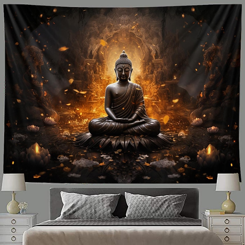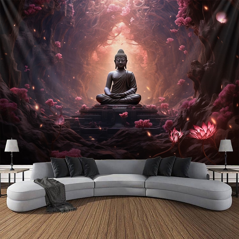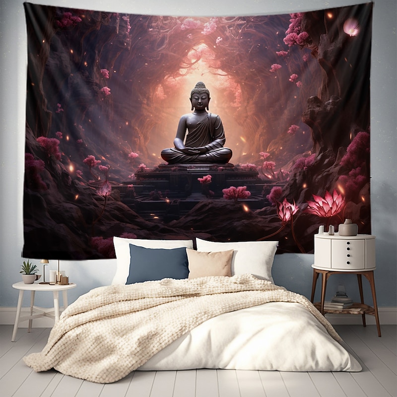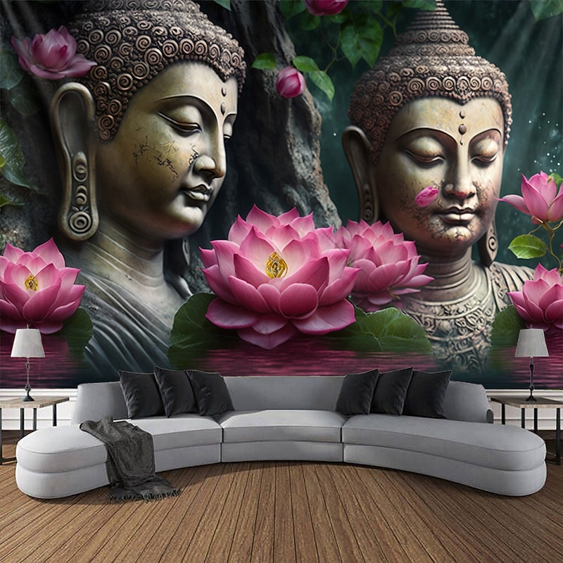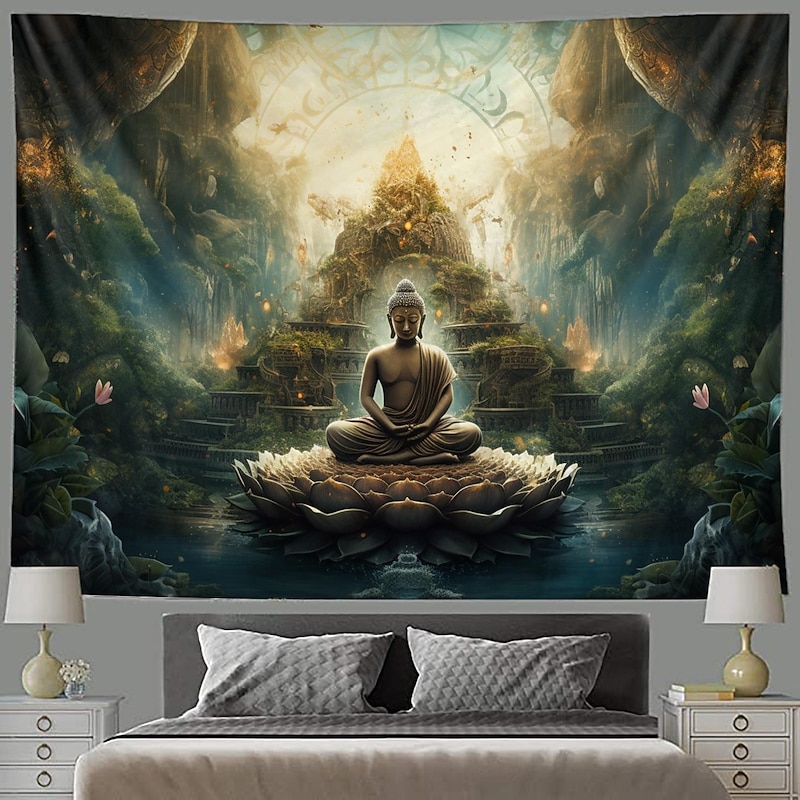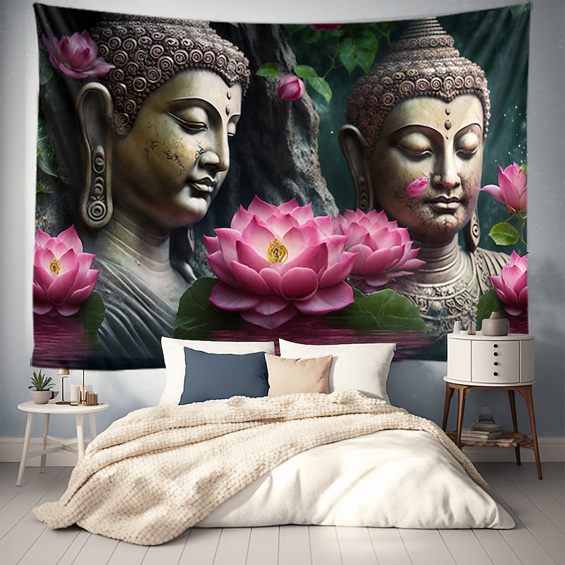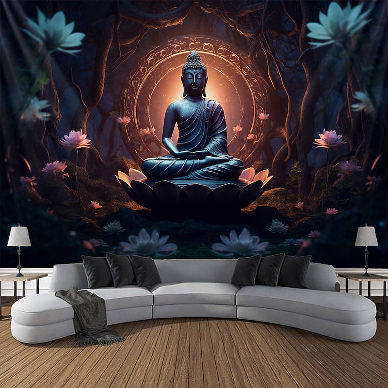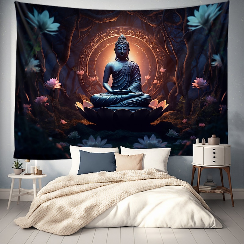 L.T.HOME Buddha Bohemian Hanging Tapestry Wall Art Large Tapestry Mural Decor Photograph Backdrop Blanket Curtain Home Bedroom Living Room Decoration Lotus 9