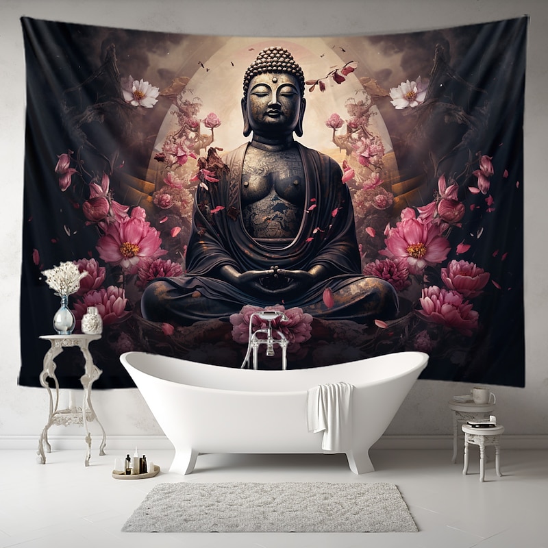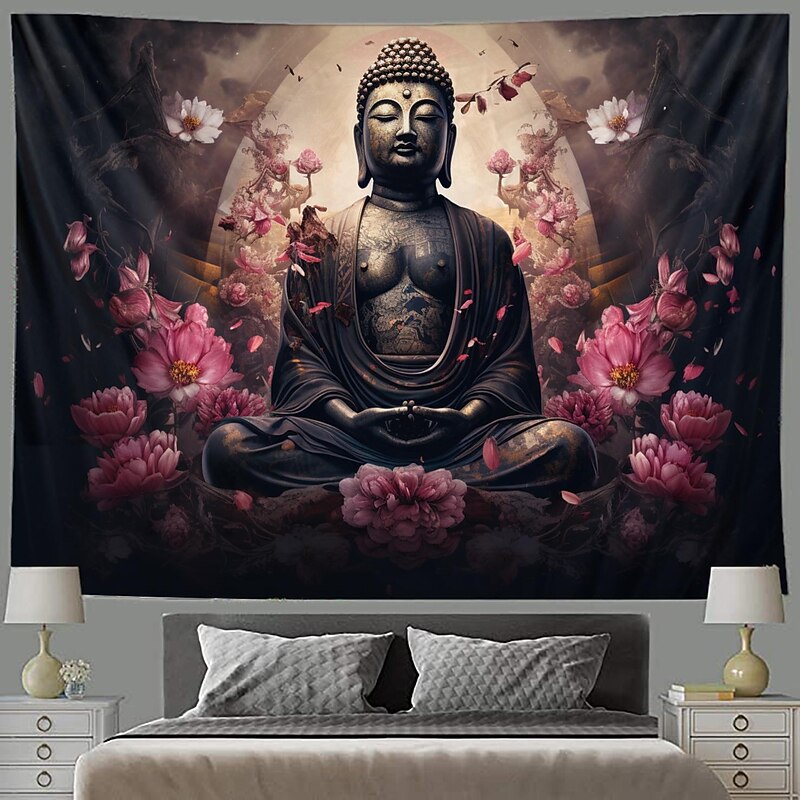 L.T.HOME Buddha Bohemian Hanging Tapestry Wall Art Large Tapestry Mural Decor Photograph Backdrop Blanket Curtain Home Bedroom Living Room Decoration Lotus 11