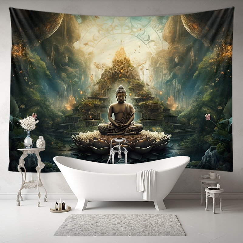 HOT ! L.T.HOME Buddha Bohemian Hanging Tapestry Wall Art Large Tapestry Mural Decor Photograph Backdrop Blanket Curtain Home Bedroom Living Room Decoration Lotus