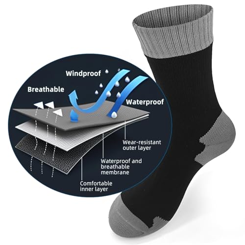 • WATERPROOF PROTECTION: Made of 100% high-tech material, these waterproof socks are not only offer reliable waterproof performance and windproof, but also wear resistant and lightweight