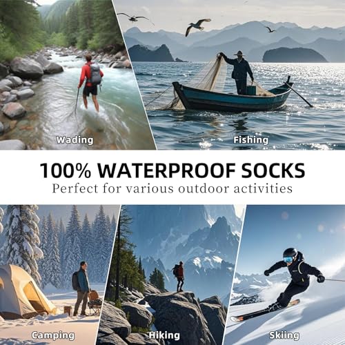 • VERSATILE USAGE: These waterproof socks are especially applicable for hiking, backpacking, trekking, camping, trail running, fishing, mountain biking, hunting, skiing, snowboard and other outdoor sports and activities in cold, wet weather