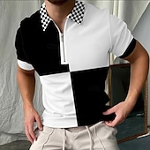 Men's Color Block Zip Polo Short Sleeve Turndown Casual Daily Outdoor Athleisure Zipper Summer Black-White 1
