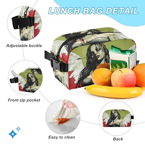 Zombie Angel Backpack Lunch Bag Set for Travel Hiking Picnic, Backpacks with Insulated Lunch Box 5