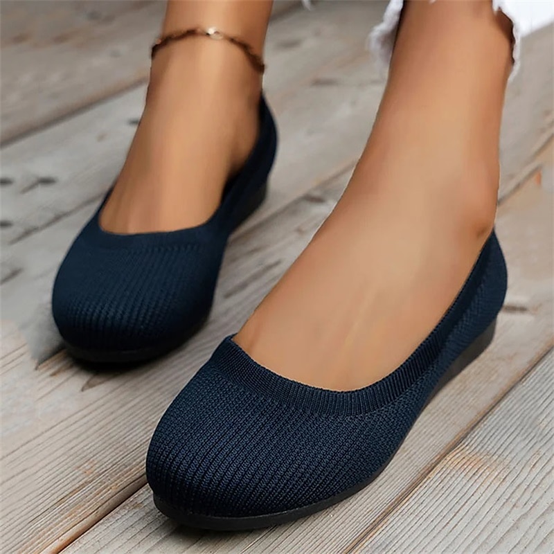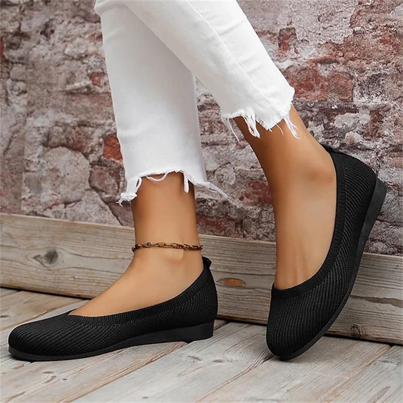 HOT ! Women's Comfortable Knit Ballet Flats – Breathable Slip-On Round Toe Wedge Shoes for Casual, Office, and Travel Wear