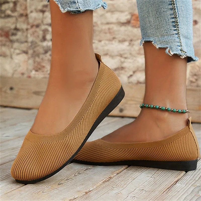 Women's Comfortable Knit Ballet Flats – Breathable Slip-On Round Toe Wedge Shoes for Casual, Office, and Travel Wear 24