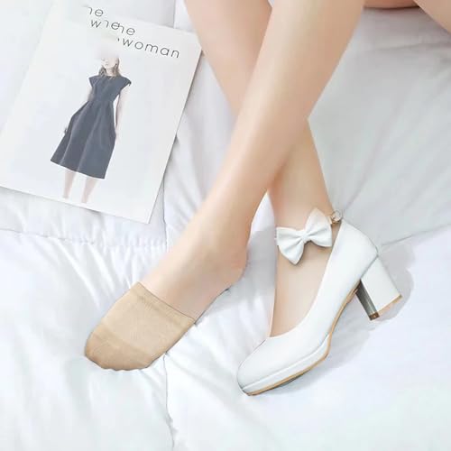 6 Pairs Toe Topper Socks No Show Liner Half Socks for Women,Seamless Grip Non Slip Sock Hidden Toe Covers Sock for Women's Mules Heels 4