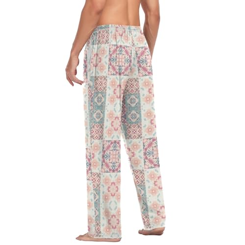 More information about Pastel Geo-floral Men's Pajama Pants Soft Lounge Lightweight with Drawstring and Pockets