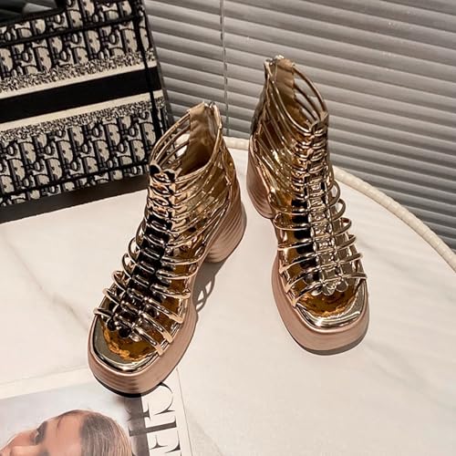 Women's High Top Gladiator Sandals Open Toe Chunky Platform Thick Sole Mid Block Heel Hollow Out Back Zipper for Summer 2