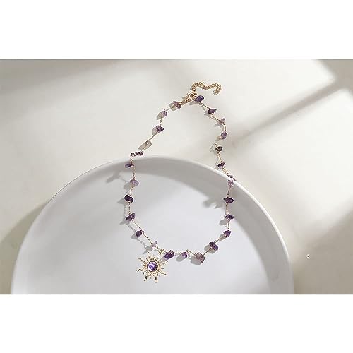 More information about Aktully Crystal Sun Necklace for Women 18K Gold Plated Sun Pendant Necklace Natural Stone Crystal Choker Necklace Healing Crystal Necklace Christmas Trendy Jewelry for Women