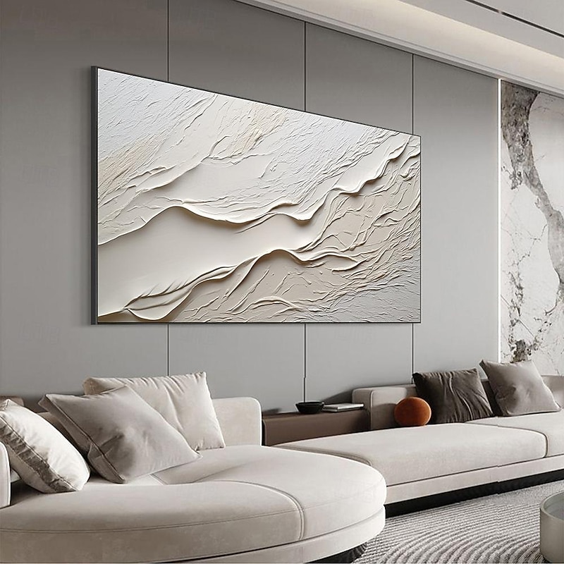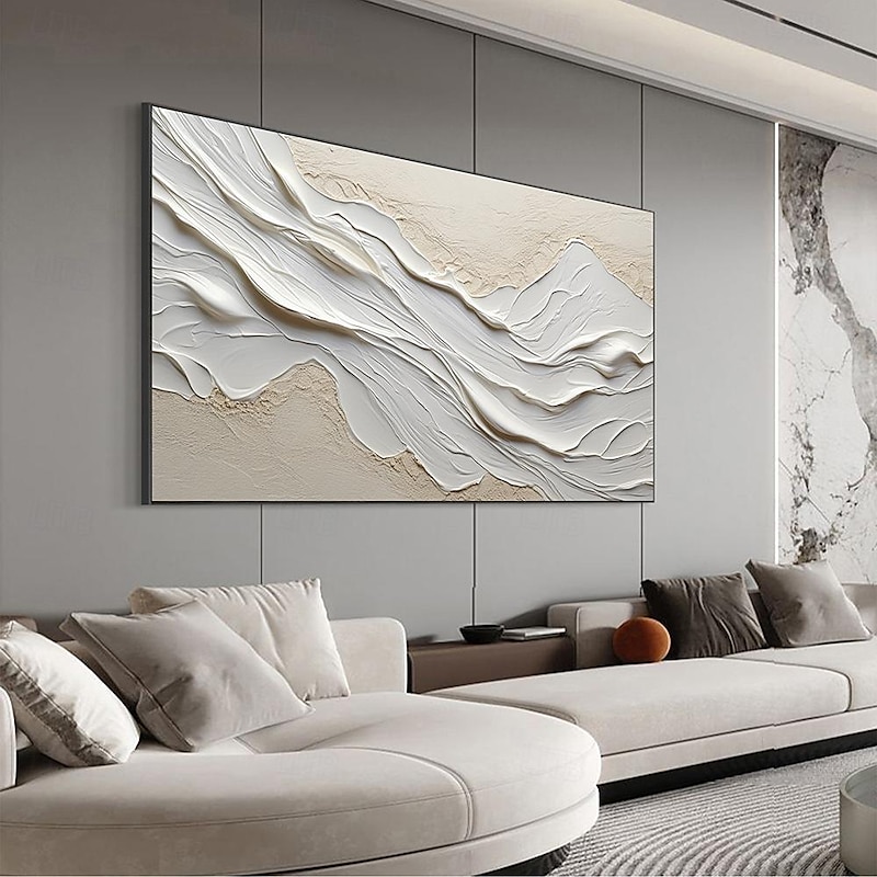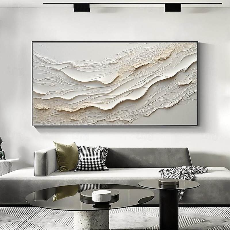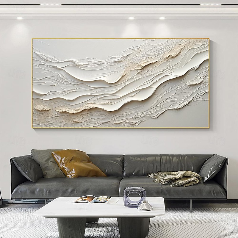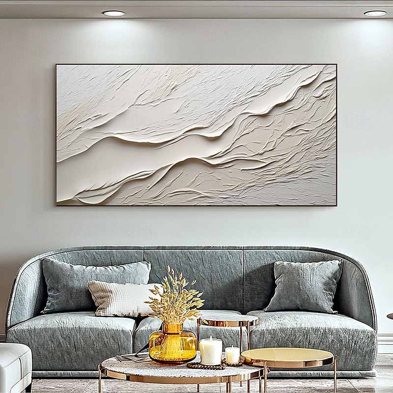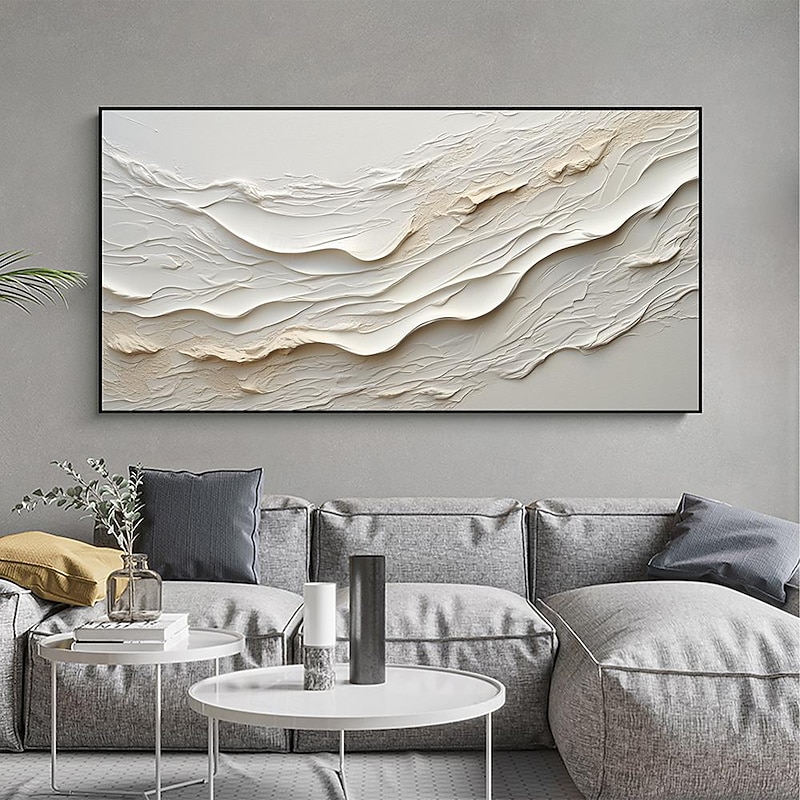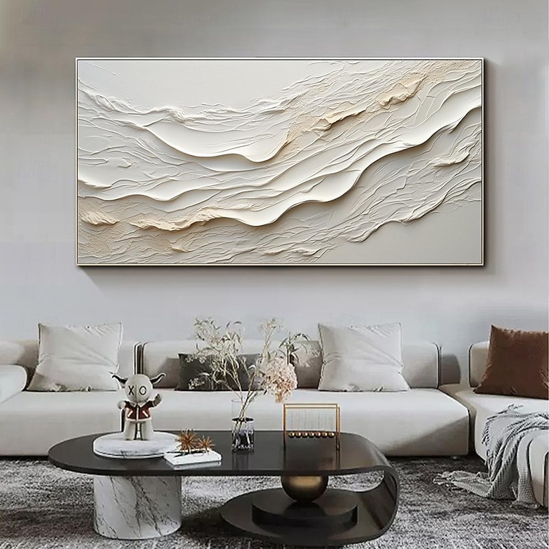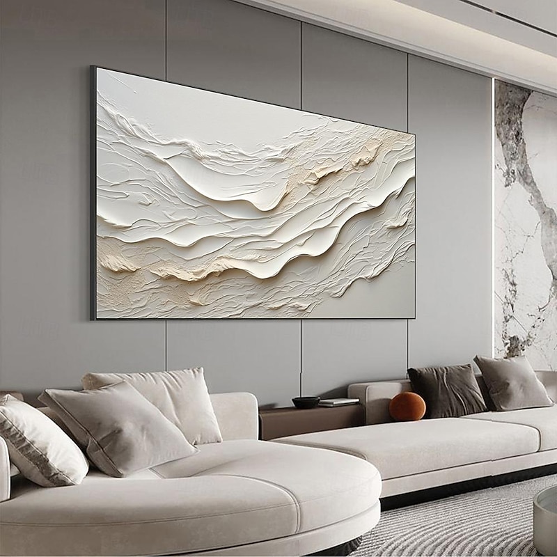 More information about Hand painted Textured White Abstract Sandy Beach Oil Painting on Canvas handmade Original Blue Ocean Painting Custom Art Decor for Living room Wall Decor Wall Art