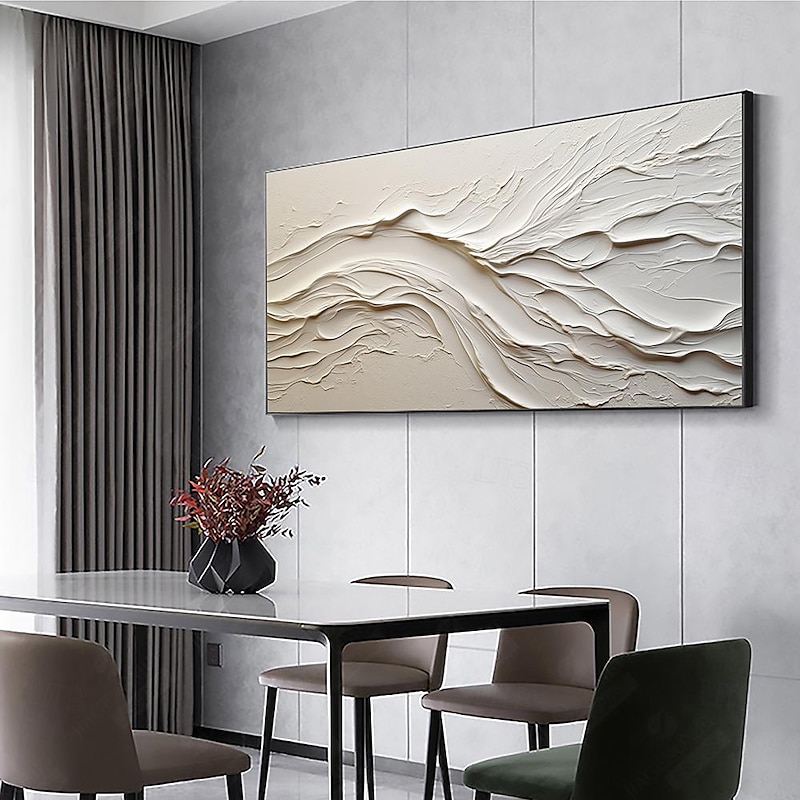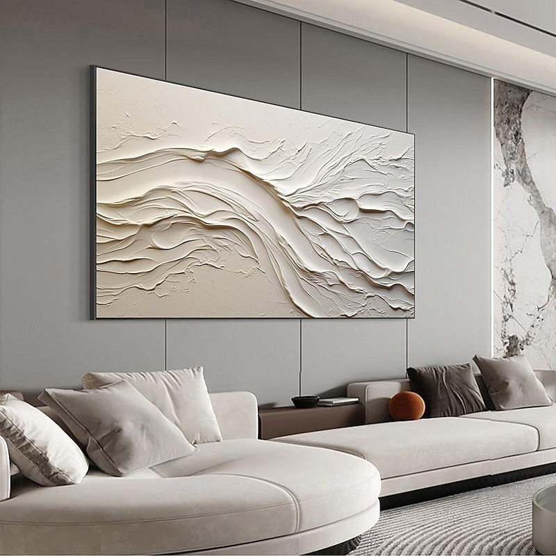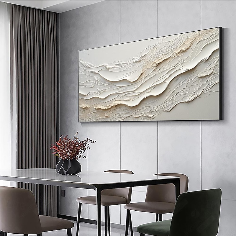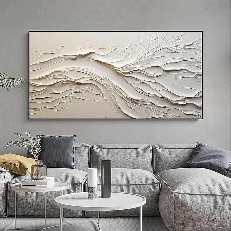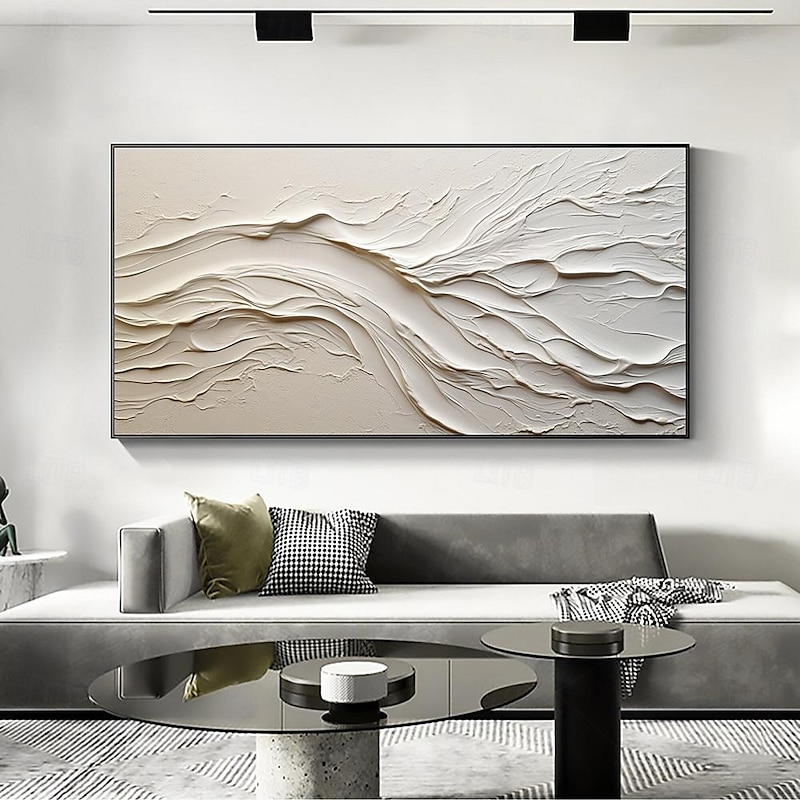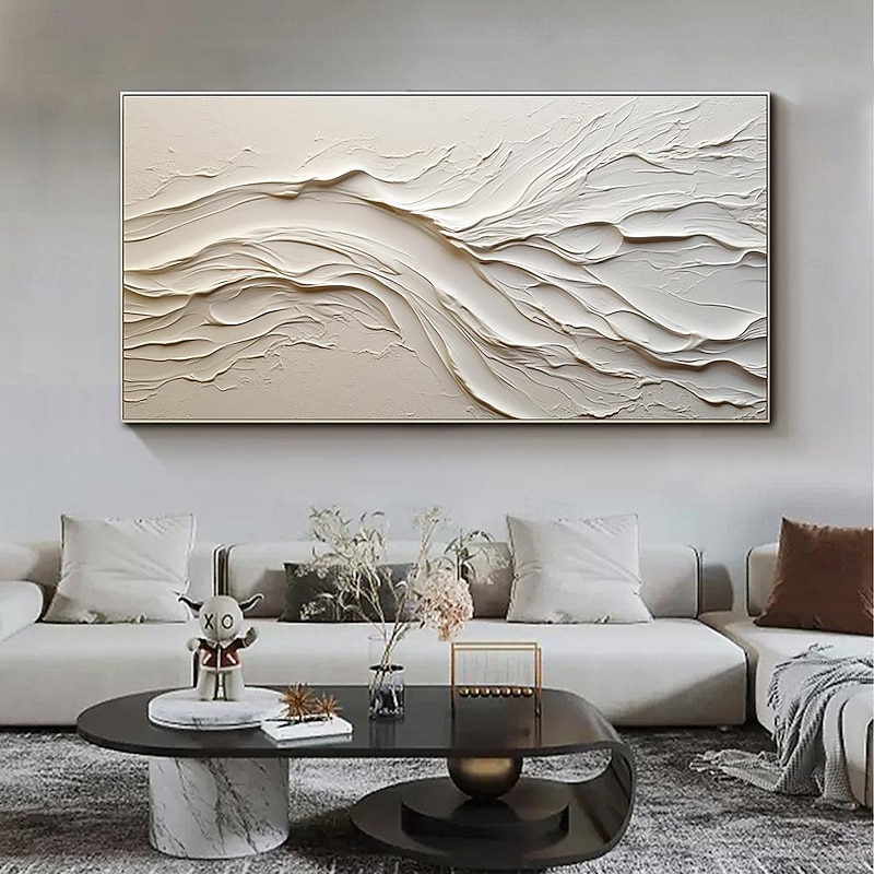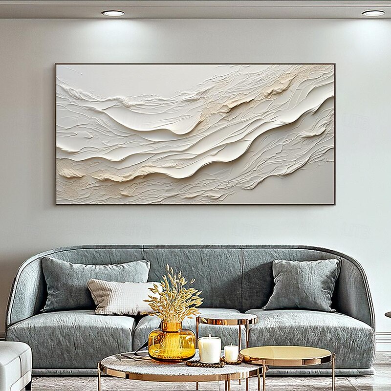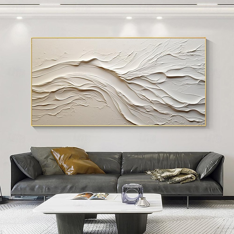 More information about Hand painted Textured White Abstract Sandy Beach Oil Painting on Canvas handmade Original Blue Ocean Painting Custom Art Decor for Living room Wall Decor Wall Art