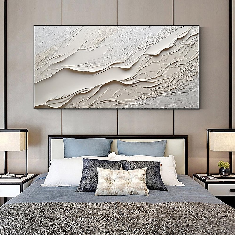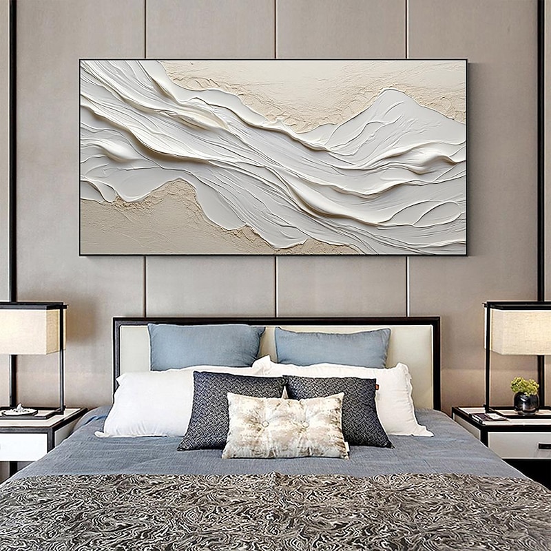 HOT ! Hand painted Textured White Abstract Sandy Beach Oil Painting on Canvas handmade Original Blue Ocean Painting Custom Art Decor for Living room Wall Decor Wall Art