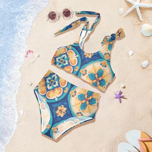 Moroccan Medallion Girls' 2 Piece Kids Bikini Set Quick-Dry Swimsuit Swimming Suits Adjustable Shoulder Strap 2
