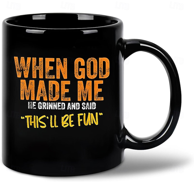 HOT ! Funny Coffee Mug - When God Made Me He Grinned and Said This'll Be Fun, Black Ceramic 11oz Cup, Sarcastic Gift for Friends, Coworkers, and Family