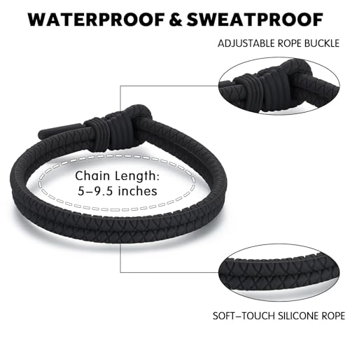 Adjustable Silicone Nautical Surfer Braided Rope Bracelet for Men Women - Waterproof Rubber Sports Couples Bracelets Gifts 3