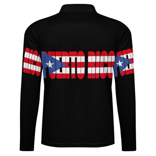 Puerto Rico Rican Country Flag Men's Rash Guard Long Sleeves Quick Dry Fishing Workout Shirts with Zipper 4