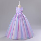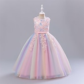 More information about Kids Girls' Flower Girl Dress Party Dress Solid Color Sleeveless Performance Wedding Party Tie Knot Adorable Princess Polyester Maxi Floral Embroidery Dress Tulle Dress Summer Spring 3-13 Years Pink