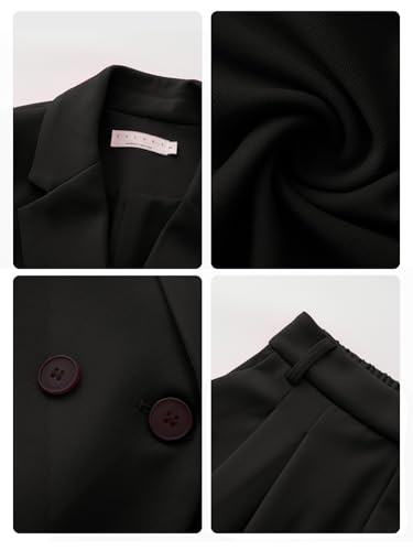 EXLURA Women's Business Blazer and High Elastic Waist Pant Suit Set Loose Fit Casual Fall Winter 2 Piece Suits for Work 3