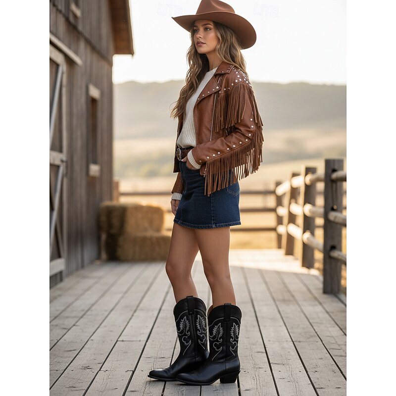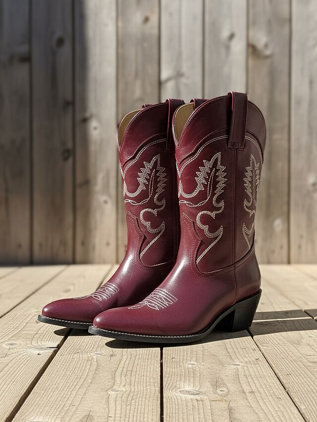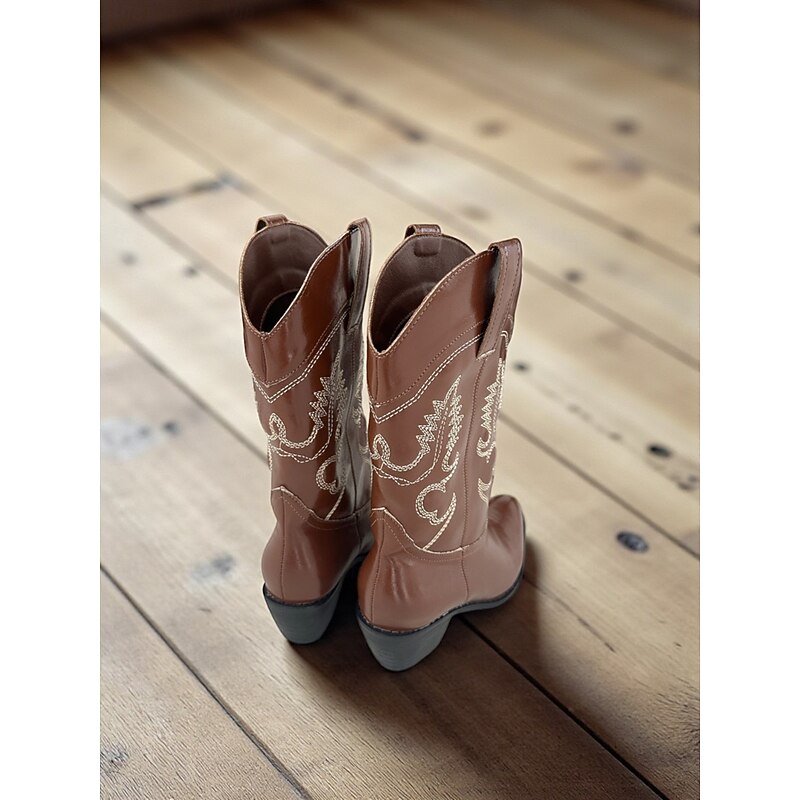 Highlights - Made with durable PU upper materials - Soft and comfortable textile lining - Stylish chunky heel for added comfort and support - Elegant pointed toe design - Sturdy rubber outsole for long-lasting wear - Embrace the 2025 trend with these trendy cowboy boots