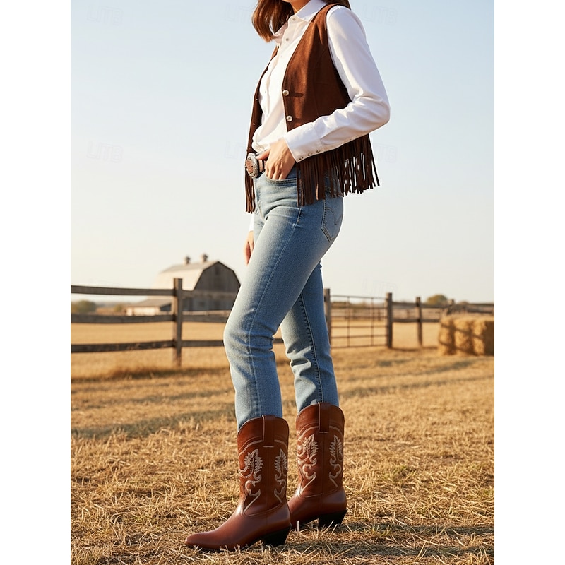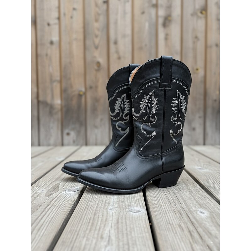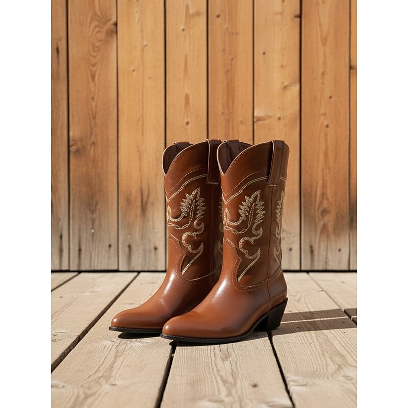HOT ! Women's Cowboy Boots with Embroidered Western Stitching, Pointed Toe and Low Block Heel - Stylish Urban Casual Footwear for Women's Streetwear and Everyday Outfits