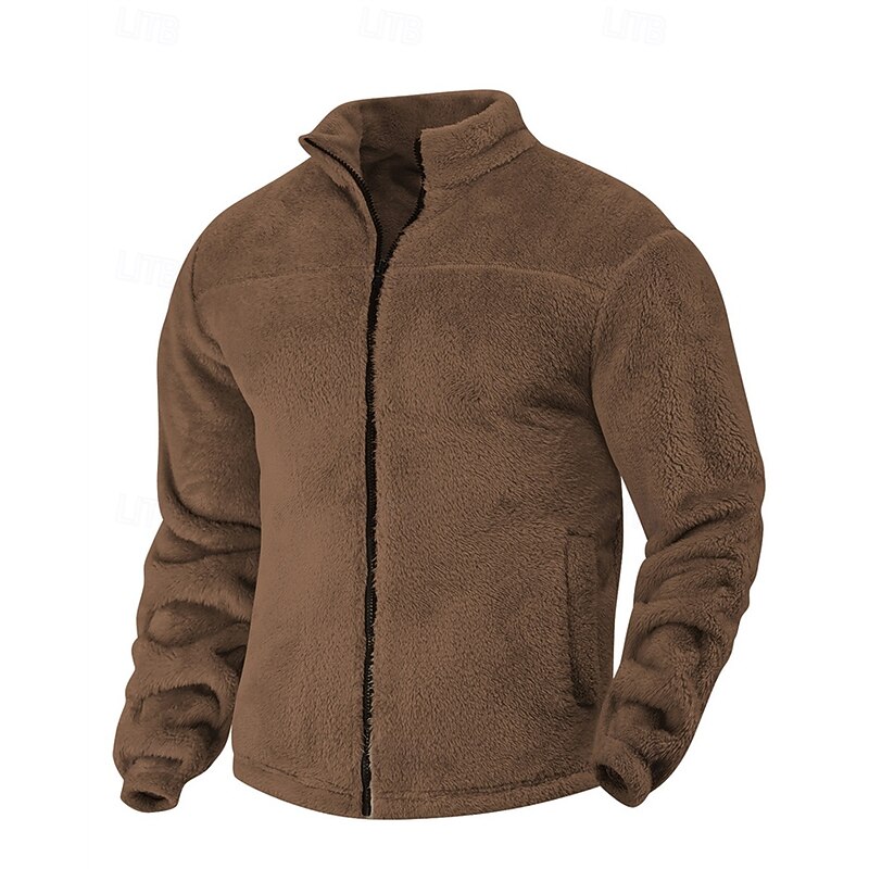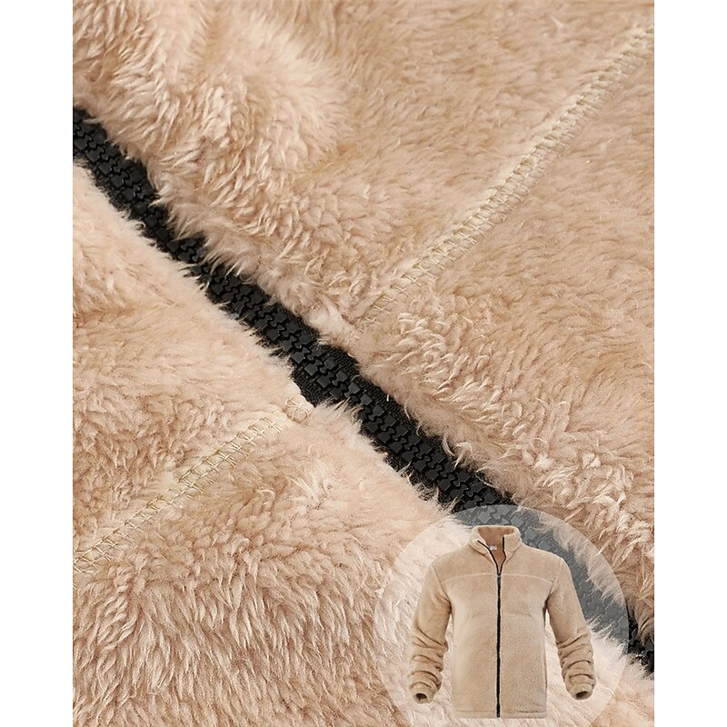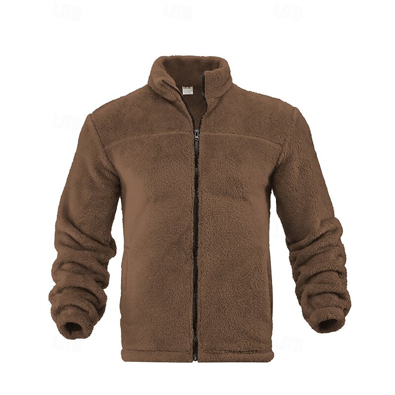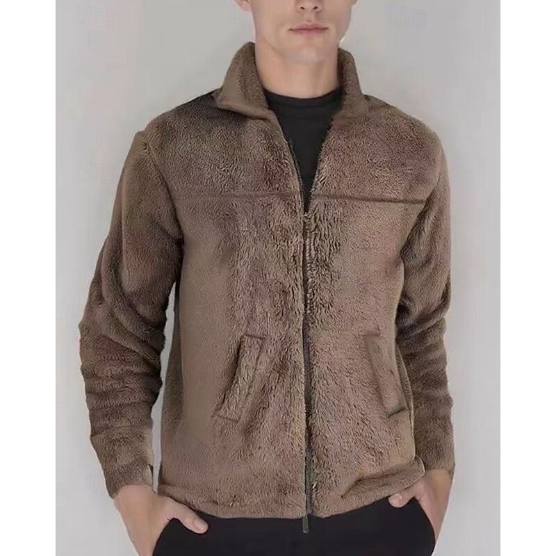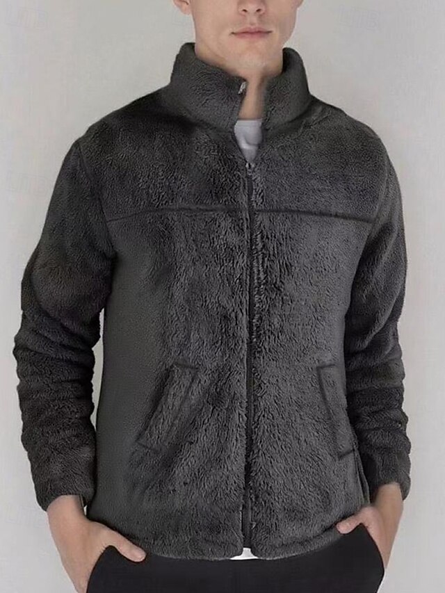 Men's Winter Jacket Teddy Coat Casual Jacket Vacation Daily Thermal snug Pocket Fleece Fall & Winter Plain Fashion Streetwear Stand Collar Regular Black Navy Blue Brown Khaki Dark Gray Jacket