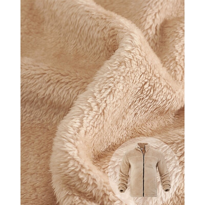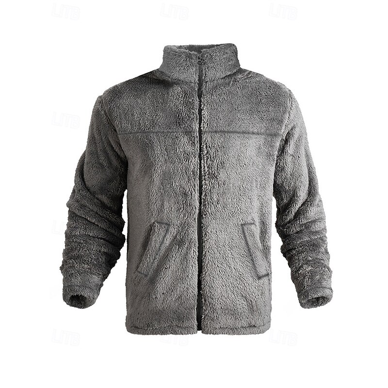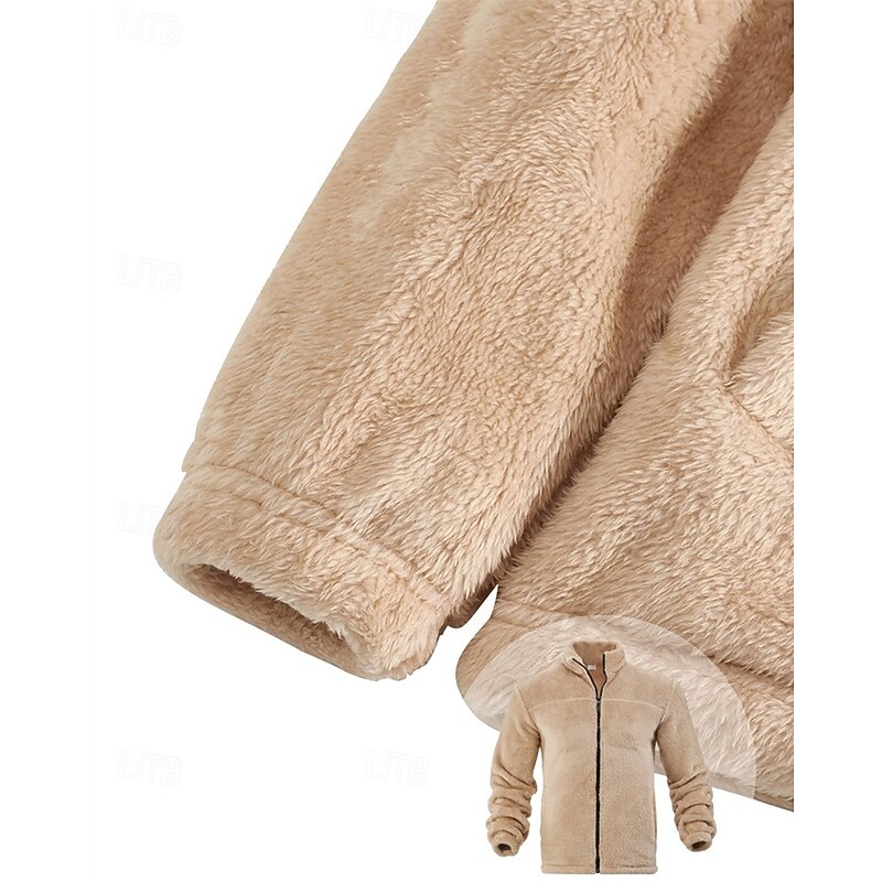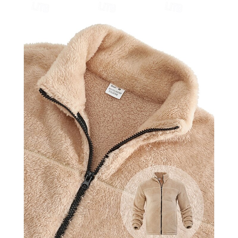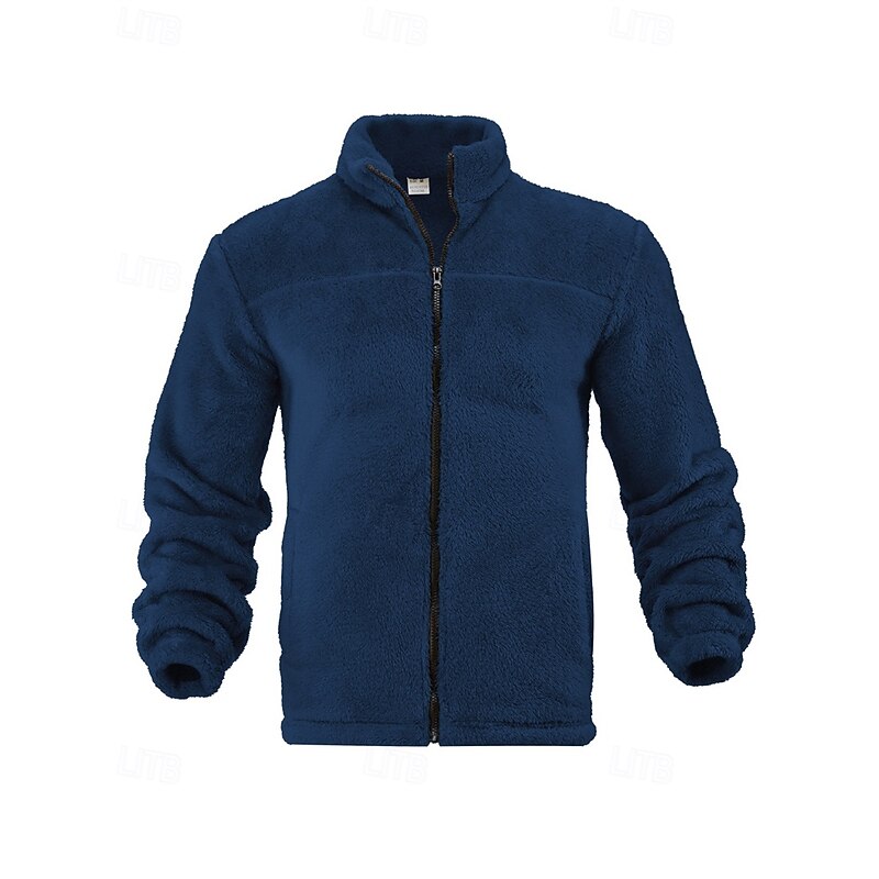Men's Winter Jacket Teddy Coat Casual Jacket Vacation Daily Thermal snug Pocket Fleece Fall & Winter Plain Fashion Streetwear Stand Collar Regular Black Navy Blue Brown Khaki Dark Gray Jacket