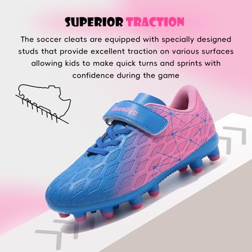 • Superior traction: The soccer cleats are equipped with specially designed studs that provide excellent traction on various surfaces, allowing kids to make quick turns and sprints with confidence during the game