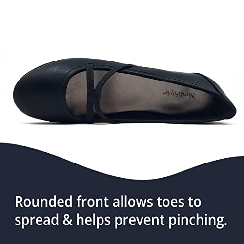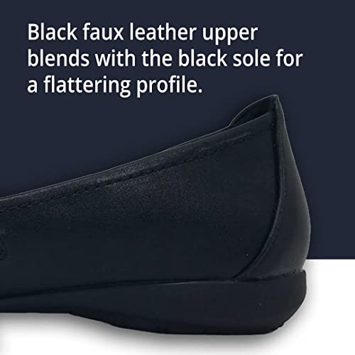 • COMFORT FIT Slip-on shoe features two elastic cross straps to hug the foot in comfort. Rounded front allows toes to spread and helps prevent pinching. With a flexible, nonskid sole these flats are great for daily wear.