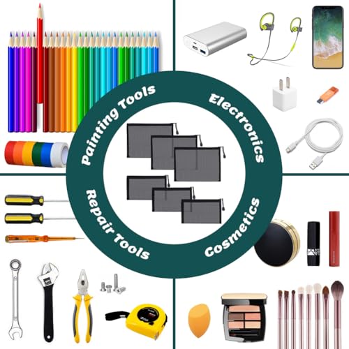 • ★ITEMS ORGANIZING - With these 6 pack mesh makeup bags, you could sort all items in different categories, keeping your home and office clean and tidy