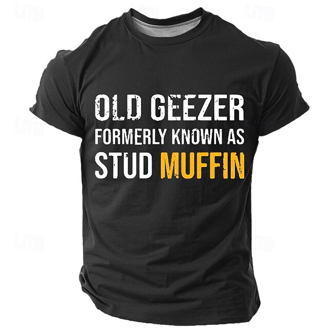 HOT ! Men's Funny Old Geezer T-Shirt: 'Formerly Known As Stud Muffin' Humorous Graphic Novelty Short Sleeve Gift