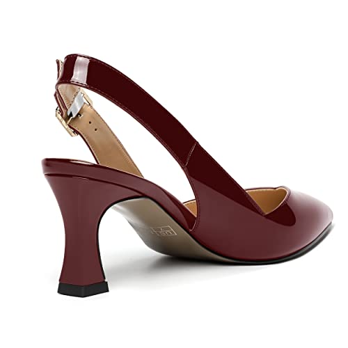 NUMALEO Womens Buckle Pointed Toe Ankle Strap Casual Patent Evening Spool Mid Heel Pumps Shoes 2.5 Inch 6